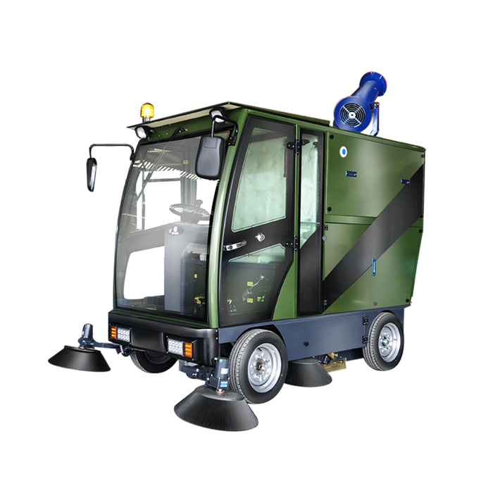 DJ2300-GYWP電動掃地機為掃吸一體化設計,前置四只邊刷負責收攏清掃幅面垃圾,中置主刷負責清掃拋甩垃圾,內置兩組大功率真空負壓吸塵系統(tǒng),配備四個500W 高速吸塵風機,通過四只大面積濾芯進行自動濾層,且可一鍵自動清理濾芯,配合高壓霧化噴淋系統(tǒng),可有效抑制揚塵和對地面垃圾及灰塵徹底清掃。