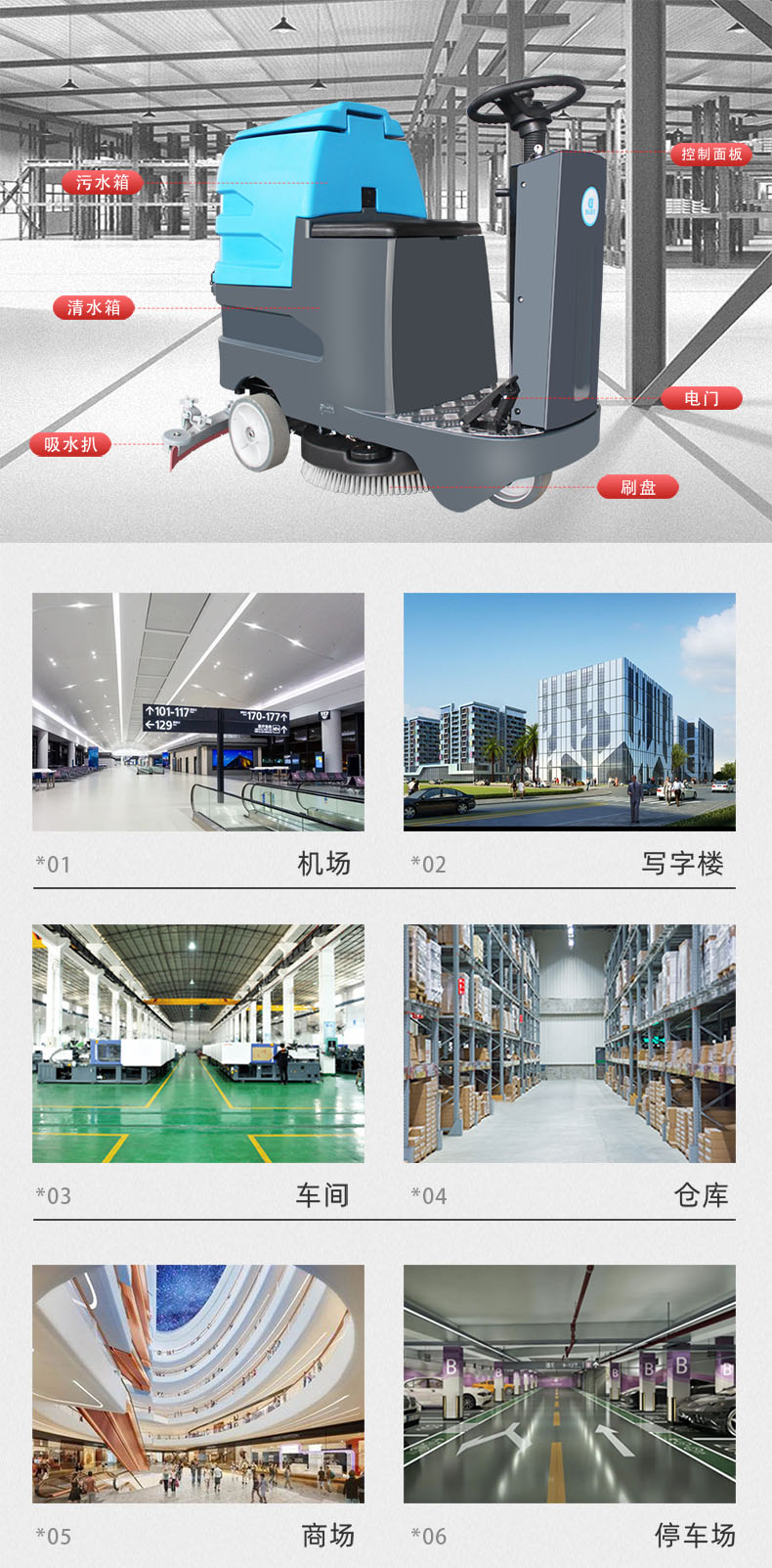 適用場所:商場超市、工廠車間、學校醫(yī)院、火車汽車站、物業(yè)地下車庫等,解決水泥地、瓷磚、環(huán)氧地坪、金剛砂等地面清洗。