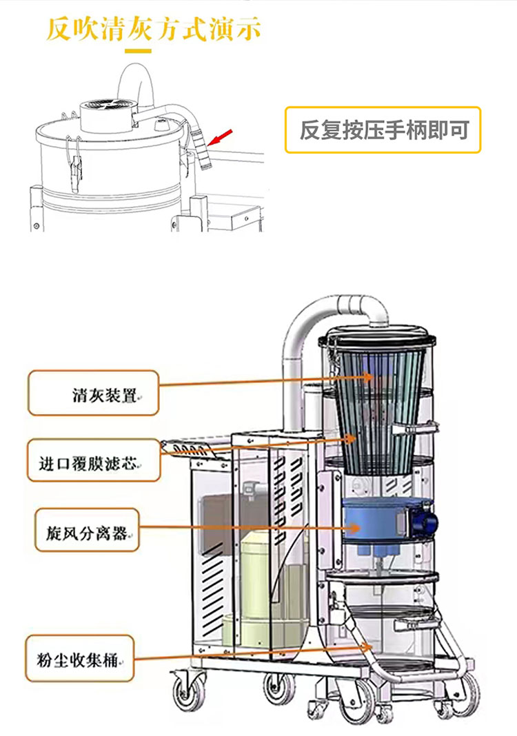 適用場所:DJ5510FB防爆工業(yè)吸塵器大功率防爆吸力強(qiáng),大容量上下分離快裝桶。
