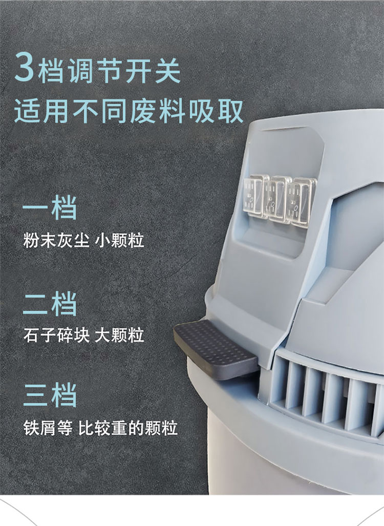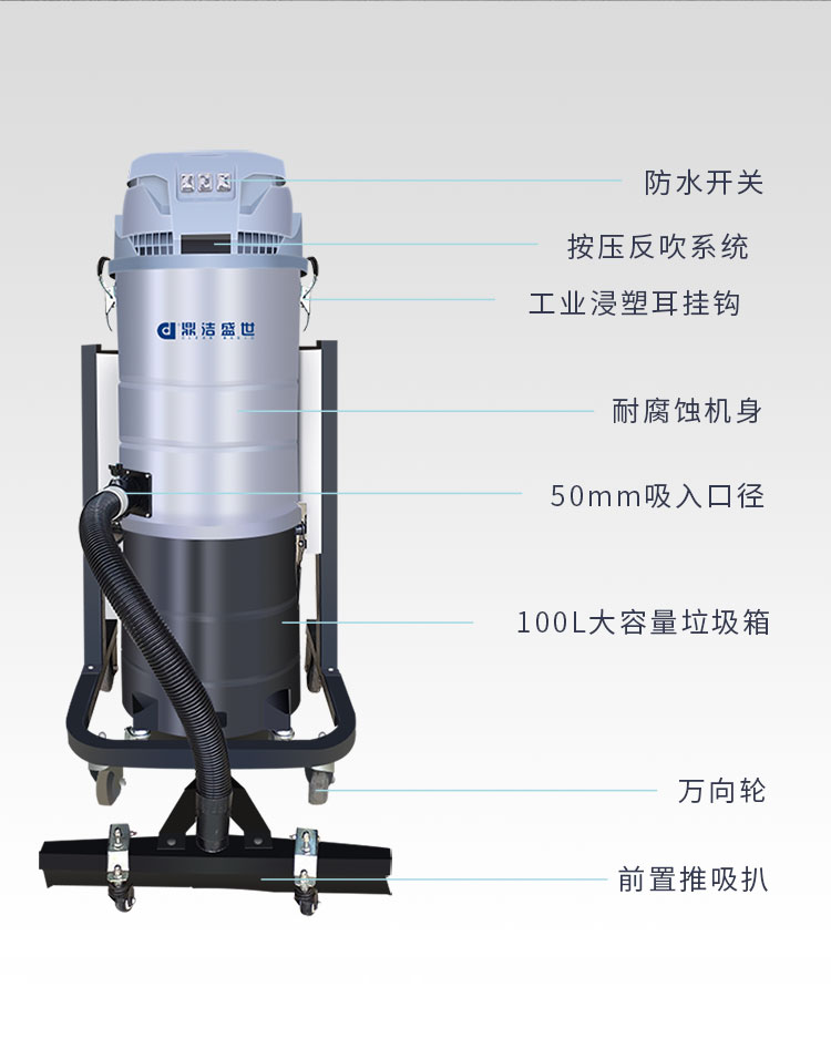 適用場所:工業(yè)專用吸塵器大功率吸力強(qiáng)、干濕兩用、反吹除塵。一站式解決工業(yè)清潔問題,可吸入多種廢料,自帶100升大容量帶滾輪垃圾桶,可獨立拆裝,可快速傾倒雜物。