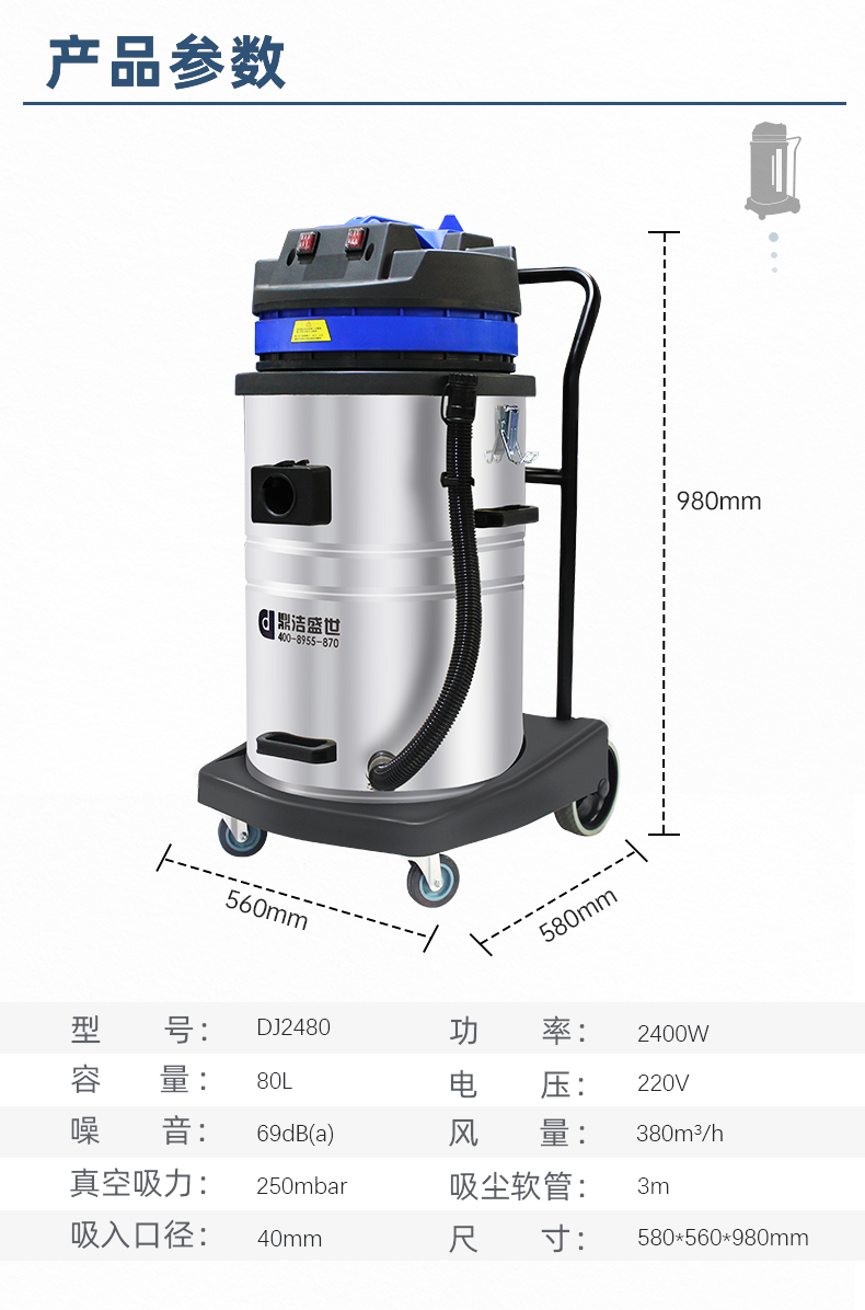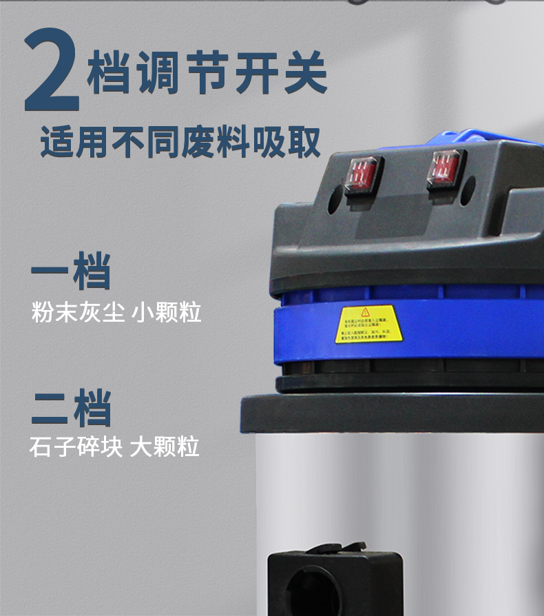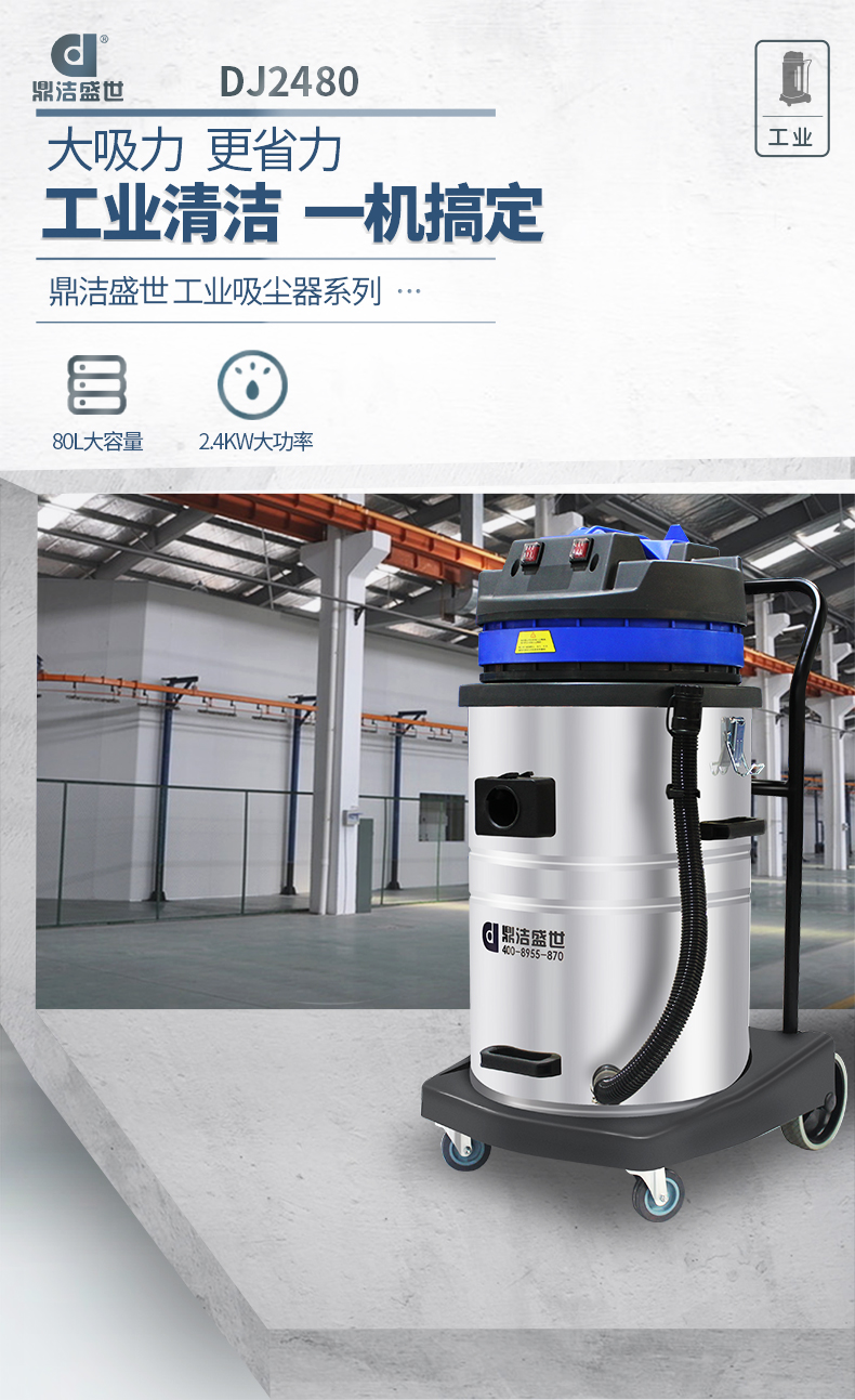 適用場(chǎng)所:DJ2480工業(yè)吸塵器2400w大吸力,一站式解決各種清潔難題,可吸入多種廢料,有2檔調(diào)節(jié)開關(guān)適用不同廢料吸取,1檔粉末灰塵小顆粒,2檔石子碎塊大顆粒。