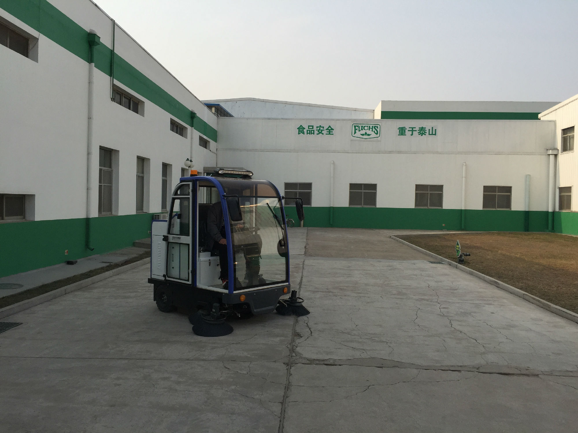 大型廠區(qū)使用鼎潔盛世DJ2210駕駛式掃地車(chē)清掃道路