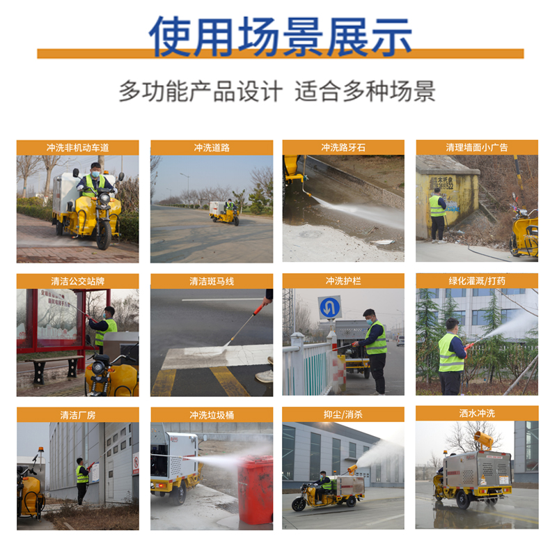 適用場所:適用場所:能有效清除建筑物,地面灰塵、污漬、可更高效的清洗環(huán)衛(wèi)站、公交車、工程車輛等,可實(shí)現(xiàn)一機(jī)多用,是城市保潔、環(huán)衛(wèi)、建筑工礦企業(yè)理想的性價(jià)比最高的戶外沖洗產(chǎn)品。