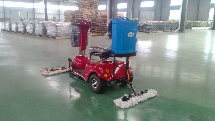 我公司自行研制的塵推車550S正式投入使用,該塵推車具備灑水的功能,在工作中大大提高了清潔標(biāo)準(zhǔn)。