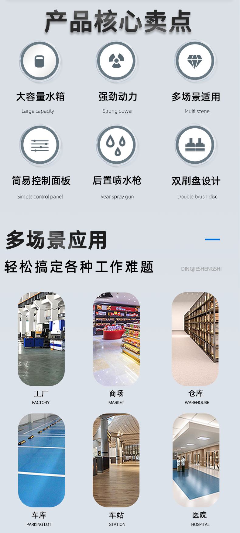 適用場所:商場超市、工廠車間、學(xué)校醫(yī)院、火車汽車站、物業(yè)地下車庫等,解決水泥地、瓷磚、環(huán)氧地坪、金剛砂等地面清洗。優(yōu)勢特點:停機(jī)和倒退,吸水扒自動提升,保證吸水扒不受損壞,停機(jī)吸力延時,保證滴水不漏。