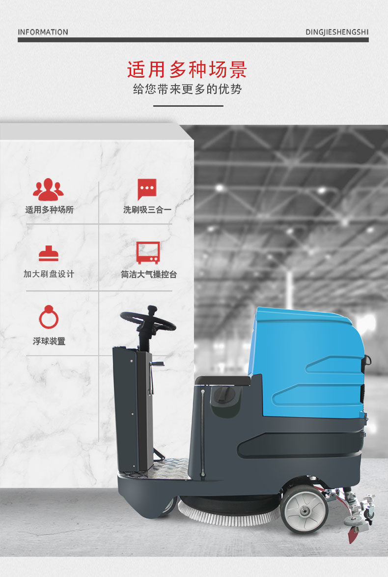 適用場所:商場超市、工廠車間、學校醫(yī)院、火車汽車站、物業(yè)地下車庫等,解決水泥地、瓷磚、環(huán)氧地坪、金剛砂等地面清洗。