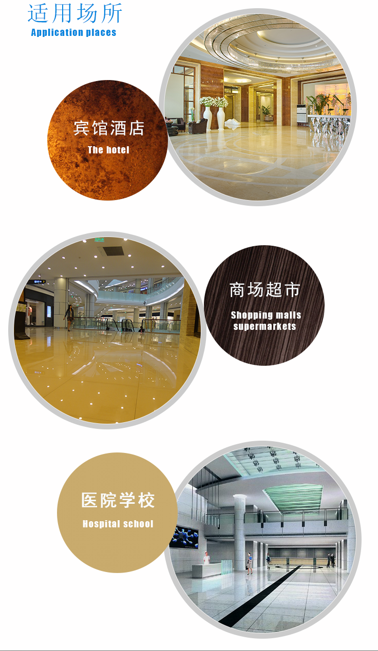 適用場所:集各種硬質(zhì)地面清洗、蠟面起蠟、噴磨保養(yǎng)等多功能于一體,適合于賓館、酒店、超市、工礦企業(yè)等場所。