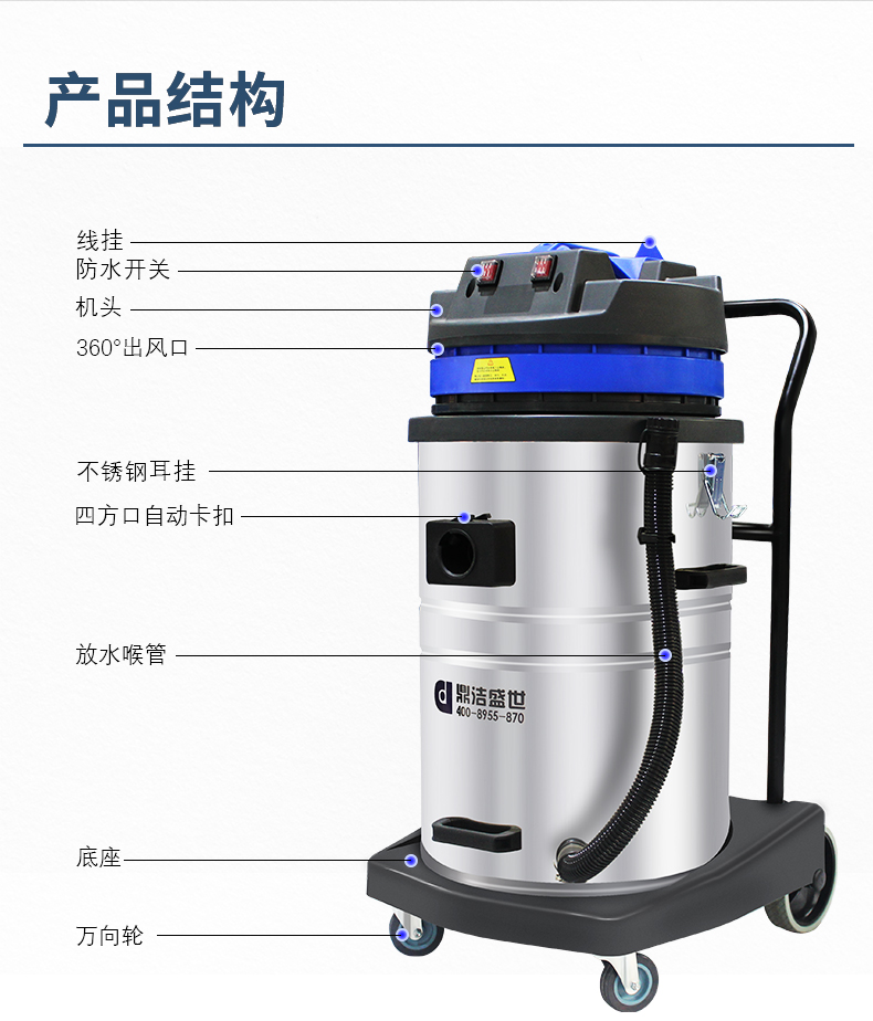 適用場(chǎng)所:DJ2480工業(yè)吸塵器2400w大吸力,一站式解決各種清潔難題,可吸入多種廢料,有2檔調(diào)節(jié)開關(guān)適用不同廢料吸取,1檔粉末灰塵小顆粒,2檔石子碎塊大顆粒。