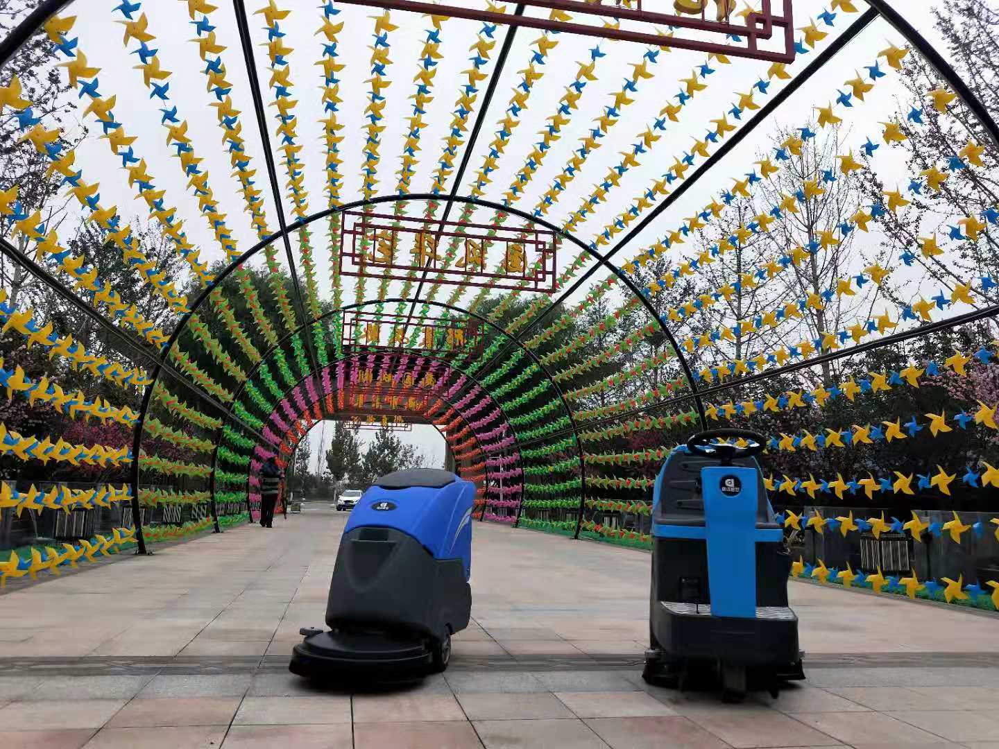 手推洗地機(jī)和駕駛式洗地機(jī)成功搭檔