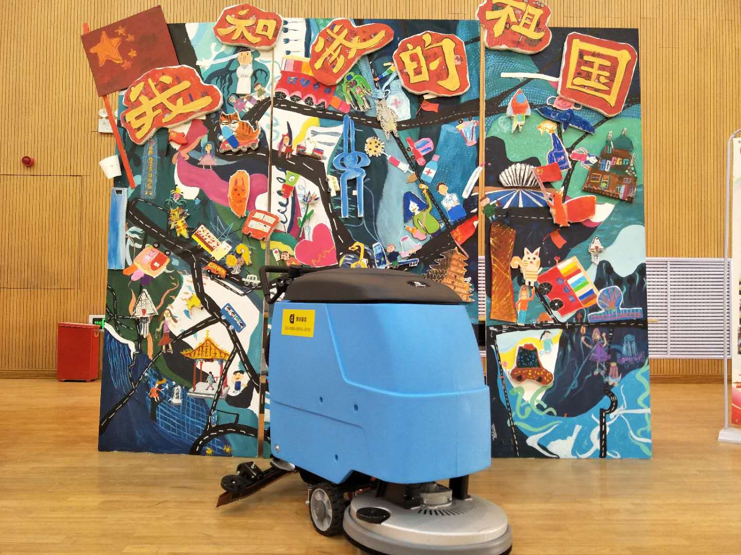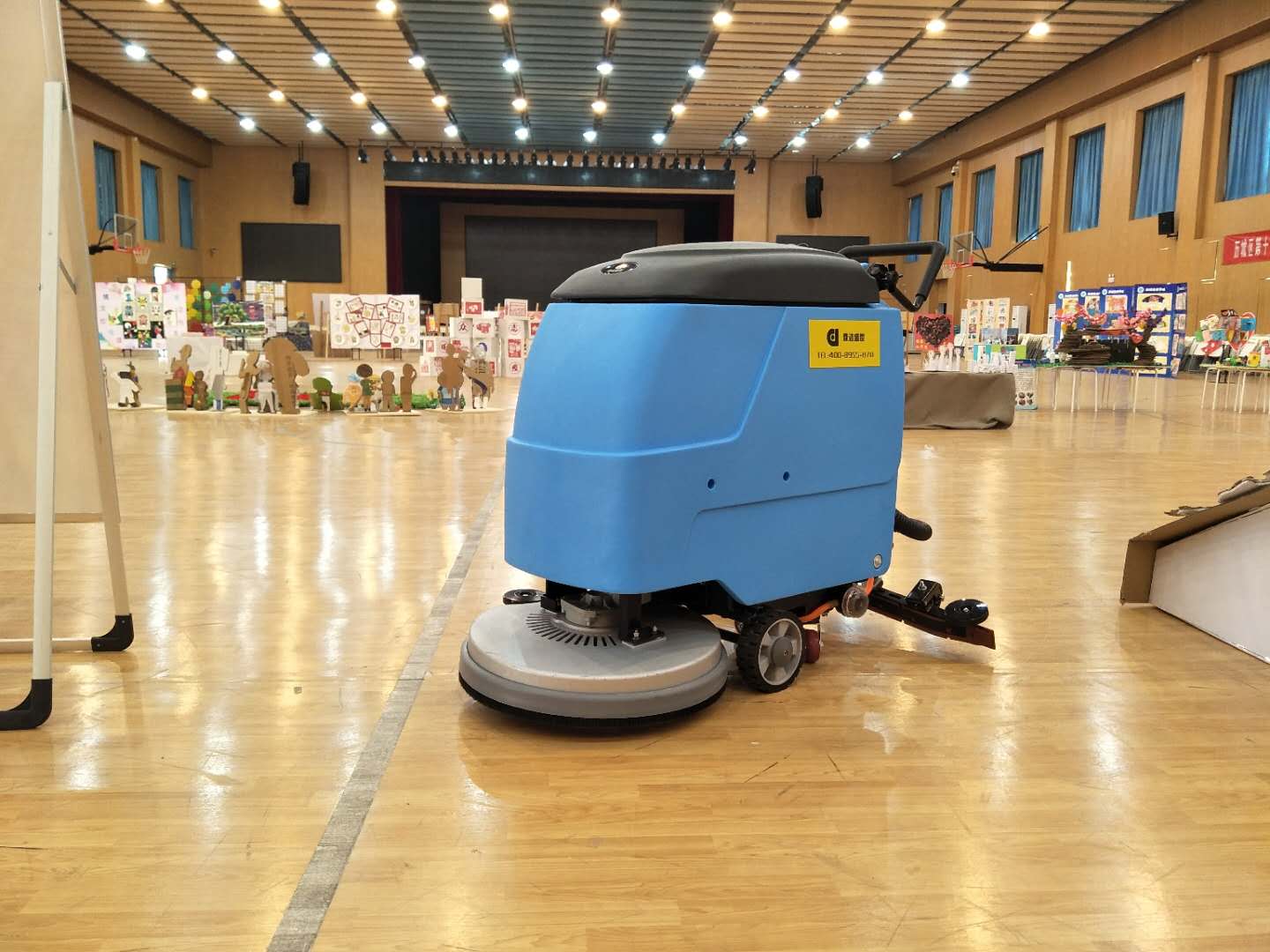 濟(jì)南大型活動(dòng)場館選擇使用鼎潔盛世DJ520手推式洗地機(jī)清潔地板,拖地洗地吸干三合一,省時(shí)省力,清潔效果更佳。